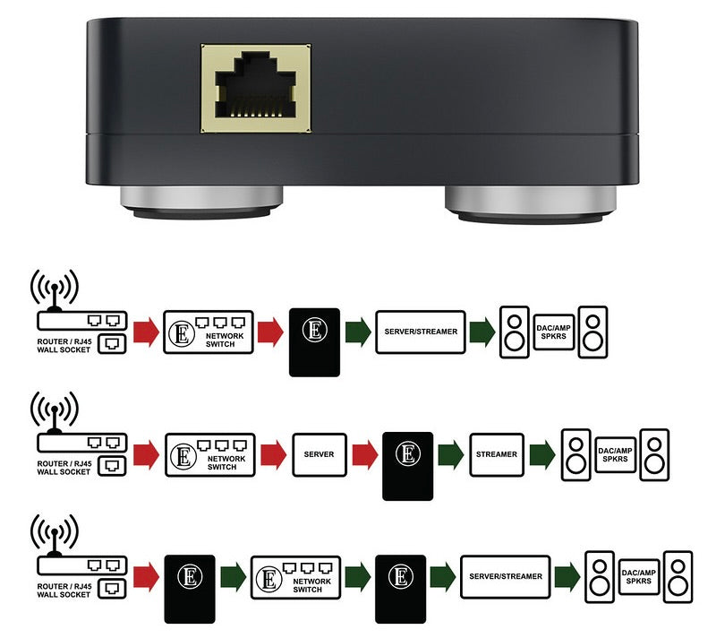 - Netzwerk-Rauschisolator ist so konzipiert, dass er diskret zwischen den Ethernet-Kabeln innerhalb eines Audio-/Video-Streaming-Systems sitzt und das Rauschen drastisch reduzieren kann, während digitale Signale ungehindert passieren können.